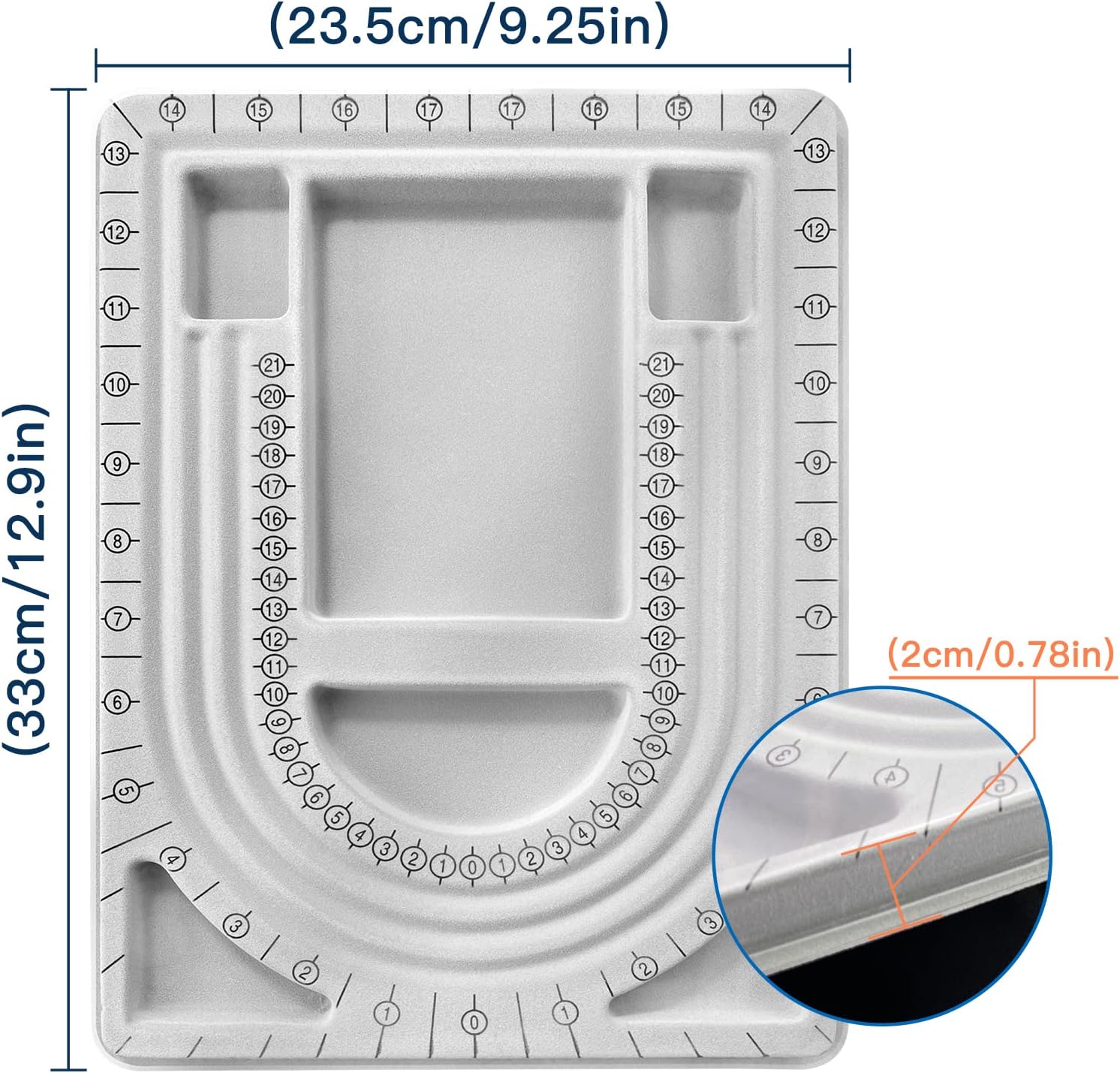 Organize your beads, charms, and findings effortlessly with the 6 recessed compartments that keep your materials neatly separated. The grey flocked surface provides a soft and non-slip base for your beads, preventing them from rolling around while you work on your creations.