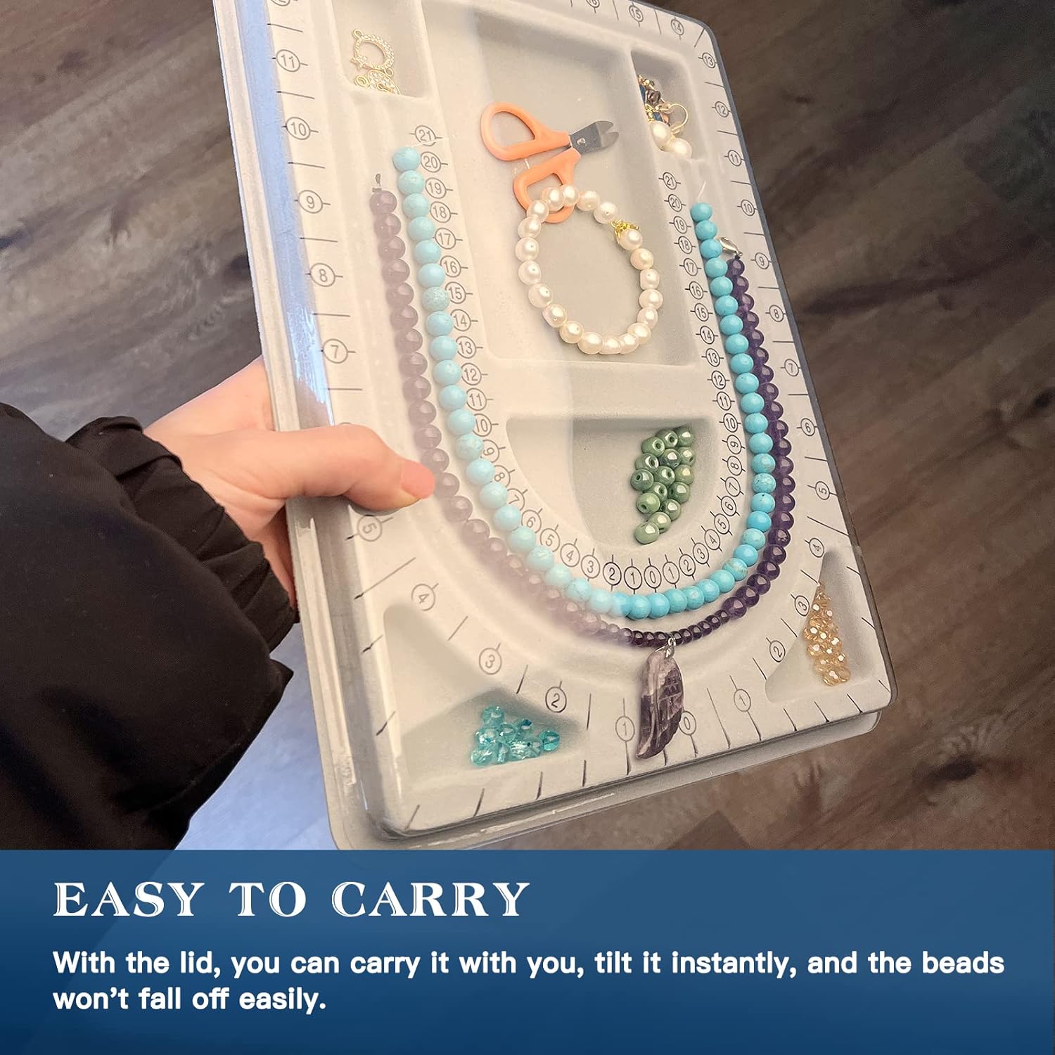 The 3 U-shaped channels are ideal for laying out your design patterns and keeping your beads in place as you string them together. The clear cover helps secure your work in progress, allowing you to easily transport or store your unfinished projects without any risk of losing pieces.